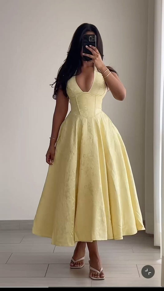 Cute A line Strapless Yellow Short Summer Birthday Dress Hoco Dress Birthday Outfit 18th Birthday Mini Party Dresses DP1022