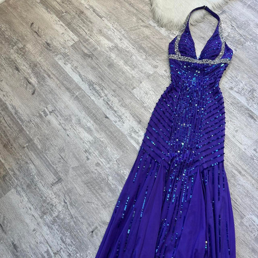 Prom dress purple beautiful retro fairy elegant sequin long chiffon ball gown evening dress party dress gh4719