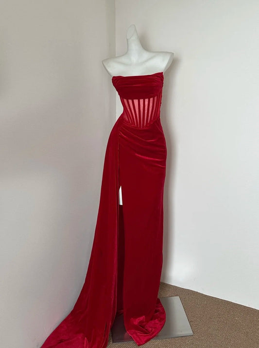 Burgundy/Red Fashion Velvet Long Prom Dress Evening Dress Party Dress gh4833