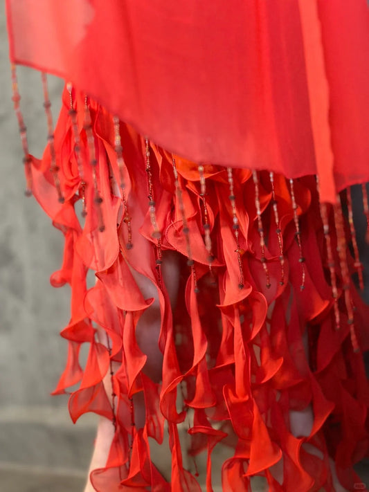 Flame red dress vintage pleated fishtail tassel beads retro elegant long chiffon prom dress evening dress party dress gh4808
