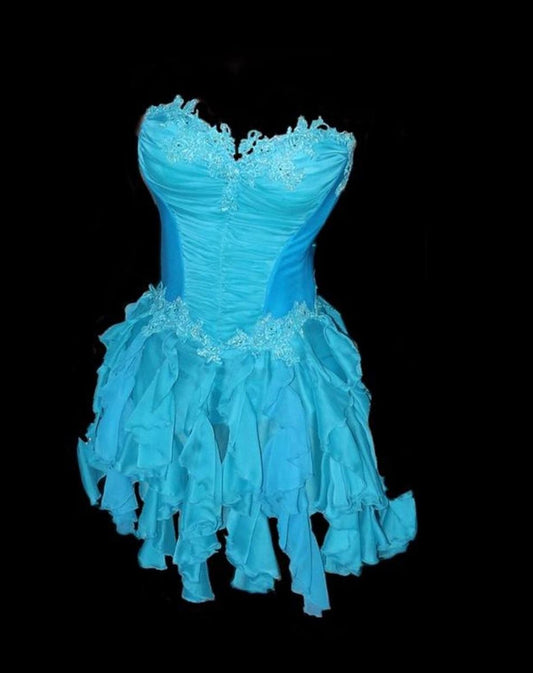 Blue exquisite applique vintage fashion short chiffon homecoming dress party dress gh4992