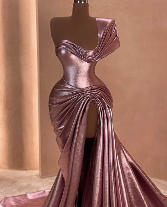 preppydressess-Pink Elegant Long Satin Prom dress Evening Dress Party Dress gh5028