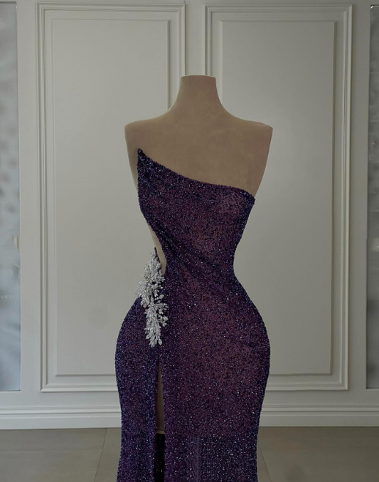 preppydressess-Purple Shiny Sexy Elegant Long Sequin Slit Prom Dress Evening Dress Party Dress gh5034