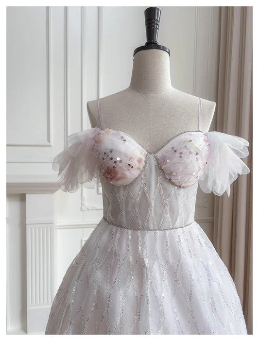 Glitter Off the Shoulder Silver Sequins Evening Dress gh2478