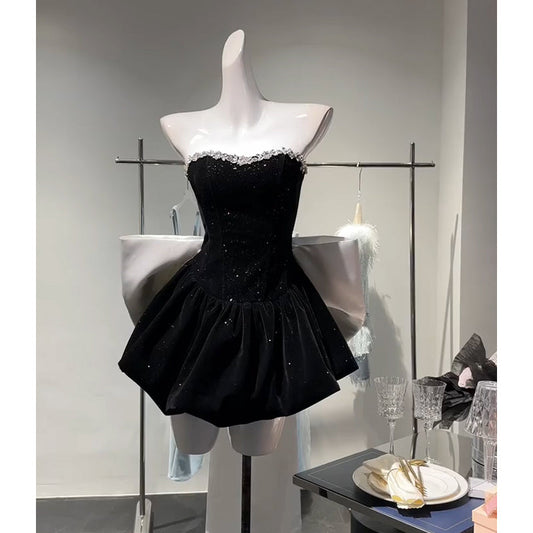 Cute Ball Gown Sweetheart Black Velvet Mini Short Formal 8th Grade Homecoming Dresses Summer Middle School Hoco Dress Homecoming Outfits DH1059