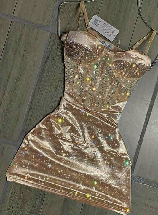 Trendy Sheath Strapless Beads Gold Mini Short Formal 8th Grade Homecoming Dresses Middle School Cocktail Dress Cocktail Outfits DH1509