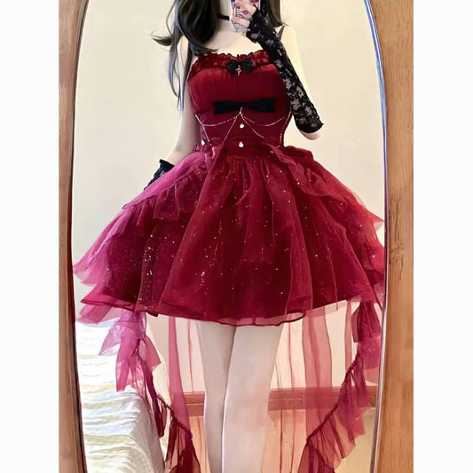 Goth Ball Gown Spaghetti Straps Burgundy Short Mini Corset Back Formal 8th Grade Homecoming Dresses Middle School Lolita Dress 18th Birthday Outfits Lolita Outfit DH1653