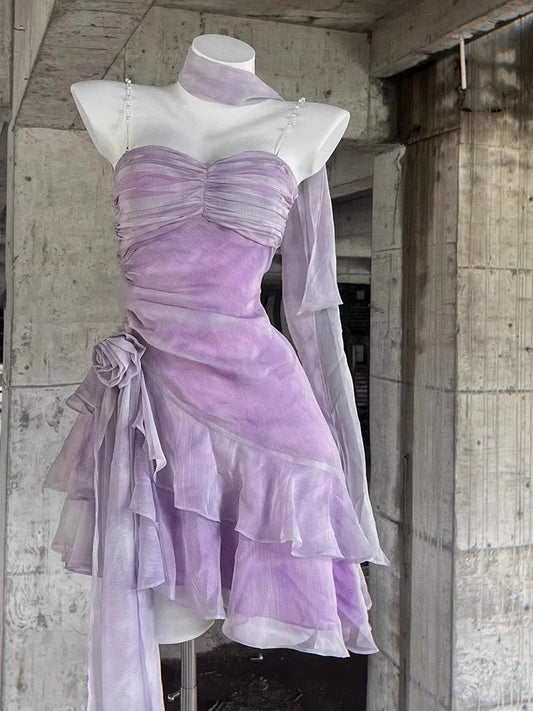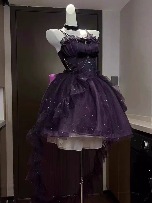 Gothic Ball Gown Spaghetti Straps Purple Short Mini Formal 8th Grade Homecoming Dresses Middle School Cocktail Dress Hoco Outfits Lolita Dress DH1656