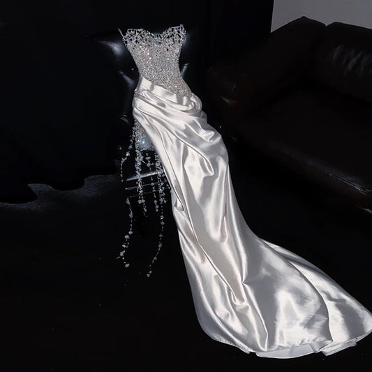 Luxury Mermaid Sweetheart White Satin Wedding Dress Modest Wedding Dresses Princess Wedding Gowns DH1773
