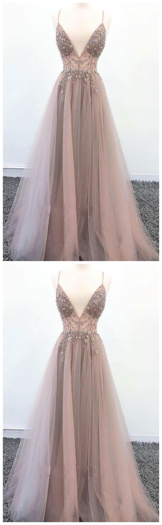 Stylish v neck tulle long prom dress, evening dress cg3426