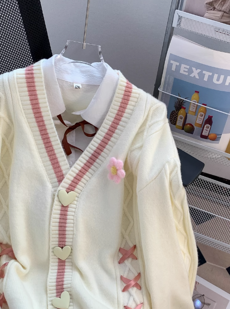 Preppy Style 3D Flower Bow Cardigan Sweater ED0250
