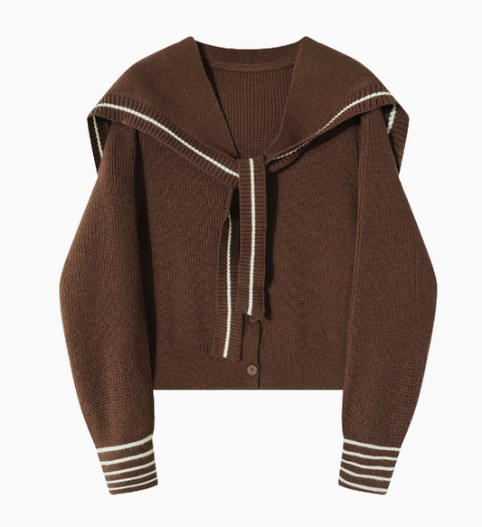Hot Girl Style Coffee Cat Ear Hooded Knitted Cardigan ED0485