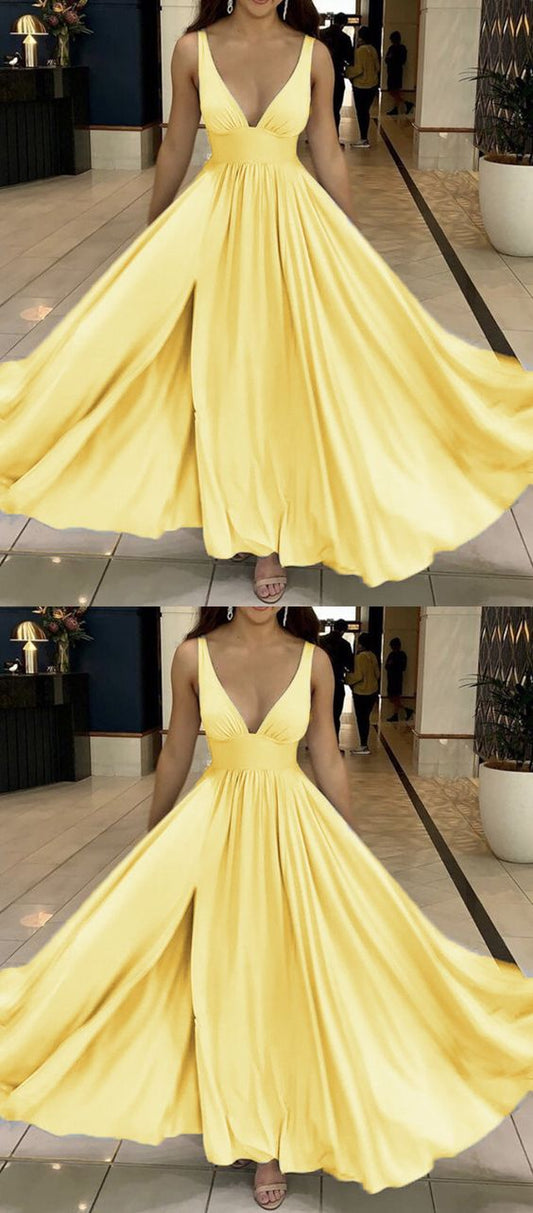 long yellow bridesmaid prom dresses plunge v neck cg3768