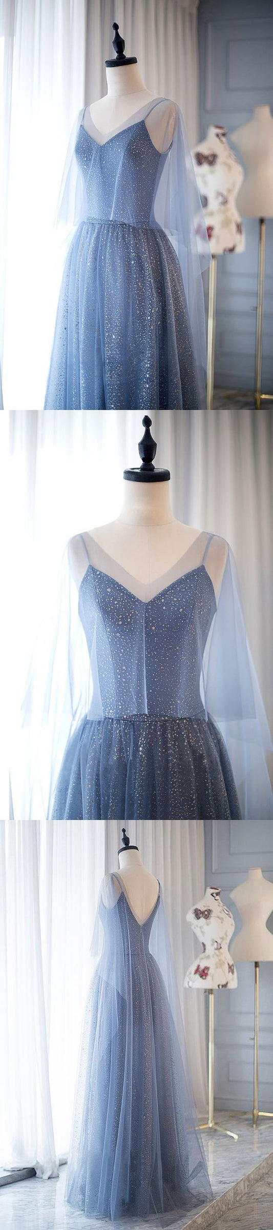 Gray blue v neck tulle long prom dress gray blue evening dress cg3806