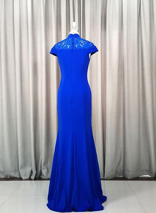 Beautiful Spandex With Lace Mermaid Long Prom Dress, Blue Evening Party Dress cg3913