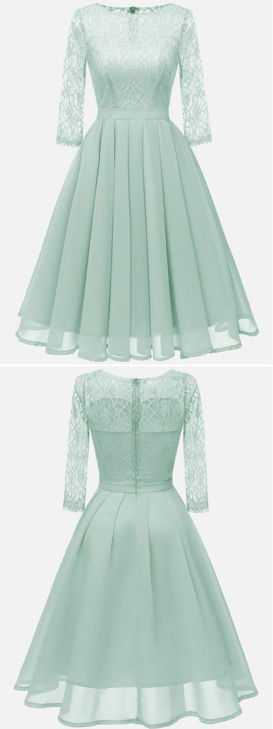 Lace Chiffon Cocktail Solid Swing prom Dress With Sleeves cg4549