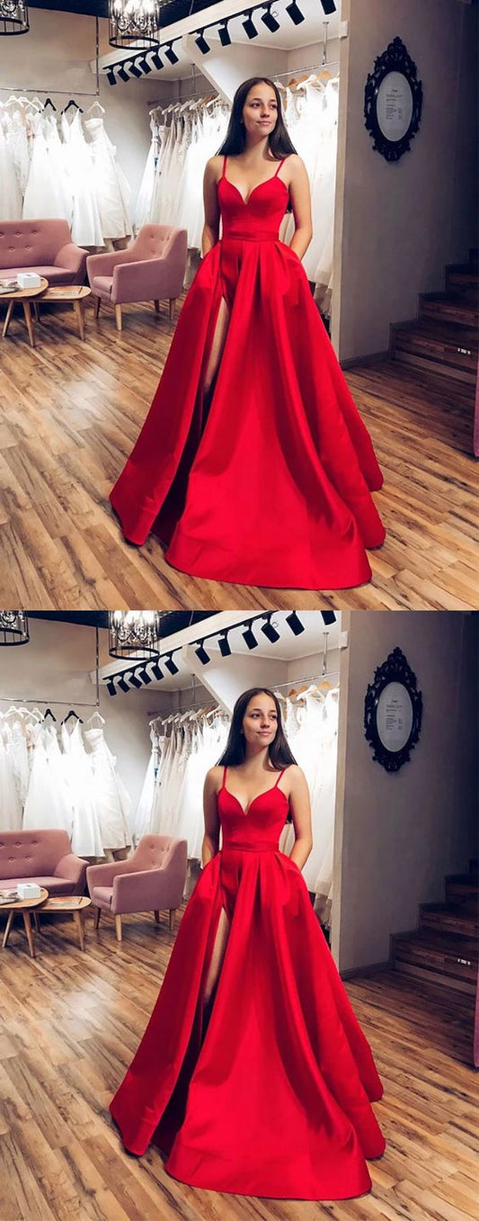 Simple A Line V Neck Backless Prom Dress with High Slit, V Neck Formal Dresses, Graduation Dresses cg4579