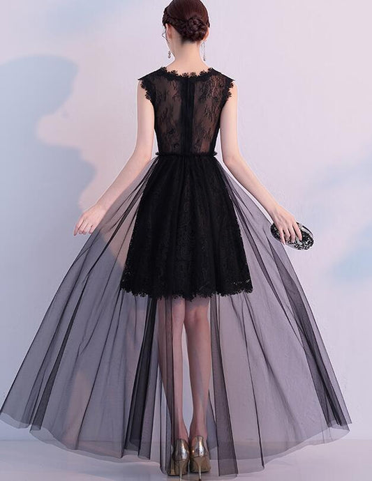 Black Tulle And Lace See Through Long Party prom Dress, Black Evening Dress cg4560