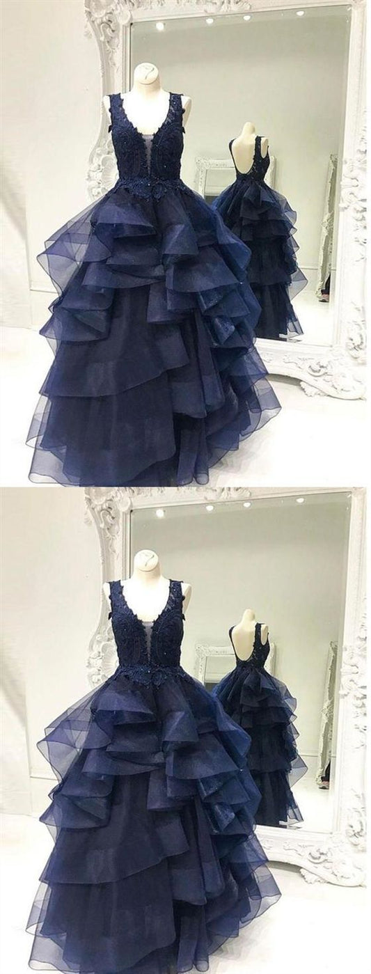 Navy Blue Sleeveless A Line Prom Dresses,Lace Appliques Evening Dress cg4775