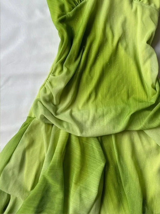 Fresh Green Beaded Mermaid Cake Skirt Prom Dress P3320