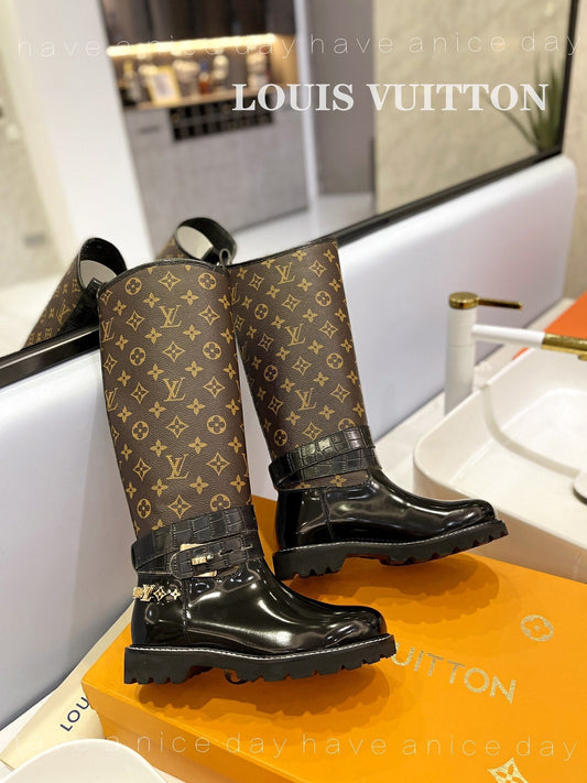 LOUIS VUITTON ASPEN PLATFORM ANKLE BOOT MONOGRAM BROWN
