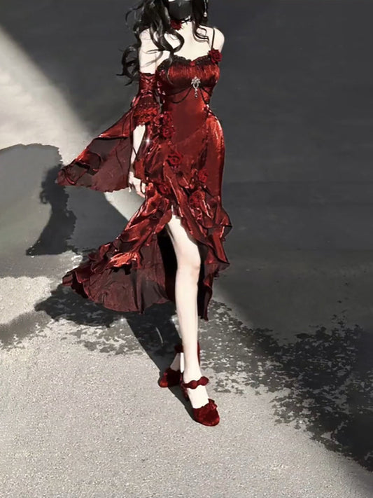 Sexy French High Low Spaghetti Straps Christmas Dress Burgundy Birthday Dresses Birthday Outfits SD1130