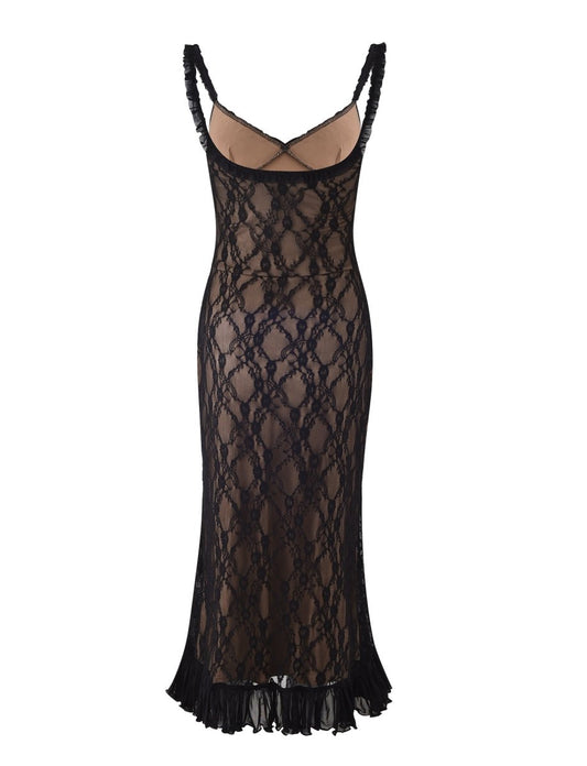 loveedsTM-Elegant lace mesh patchwork suspender dress