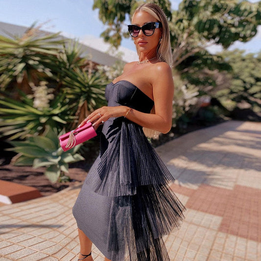 loveedsTM - 2024 New Bandage Dress Sexy Bodycon Women Mesh Strapless Party Club Evening Elegant Black White Clothes
