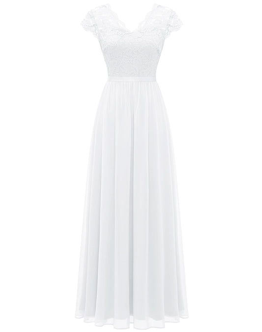 loveedsTM- Women's Elegant Vintage V Neck 3/4 Sleeve Floral Lace Chiffon Wedding Bridesmaid Maxi Dress Long Formal Dresses