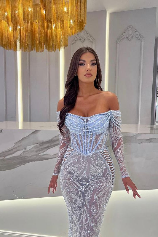 loveedsTM-Sexy off-shoulder long-sleeved dress-vx