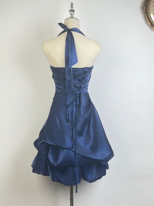 Dark Purple Halter Short Vintage Evening Dress Cocktail Dress fg6538