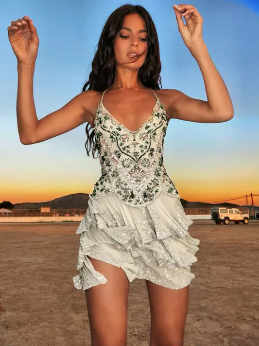 Stunning V-neck Bodycon Party Dress Sequin Chiffon Short Evening Gowns ED02540