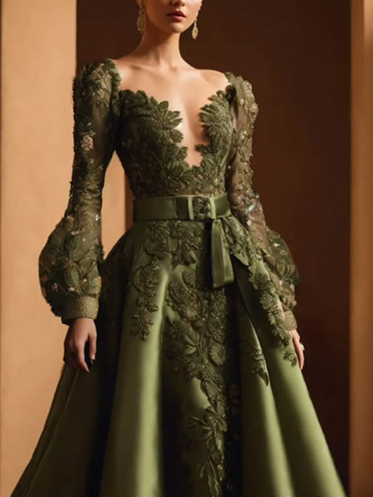 💫Fairytale A-line Prom Dress for Wedding 🌸Chiffon 3D Applique Evening Dress ED01337