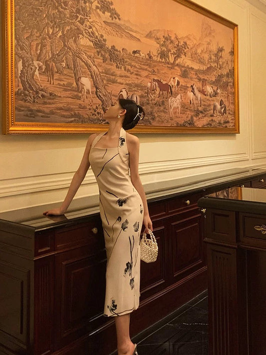 Pretty Sheath Halter Satin Floral Prom Dresses Birthday Outfits Evening Gown SD930
