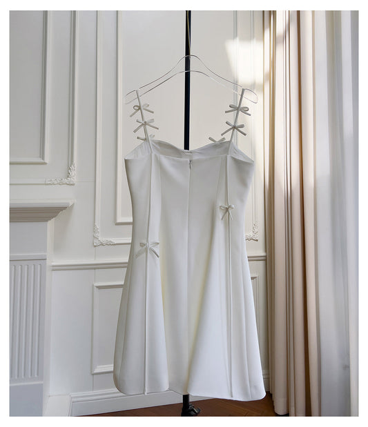 Pretty A Line Spaghetti Straps White Satin Short Formal Homecoming Dresses Middle School Short 21st Birthday Outfits Graduation Dress Mini Cocktail Dresses DH2296