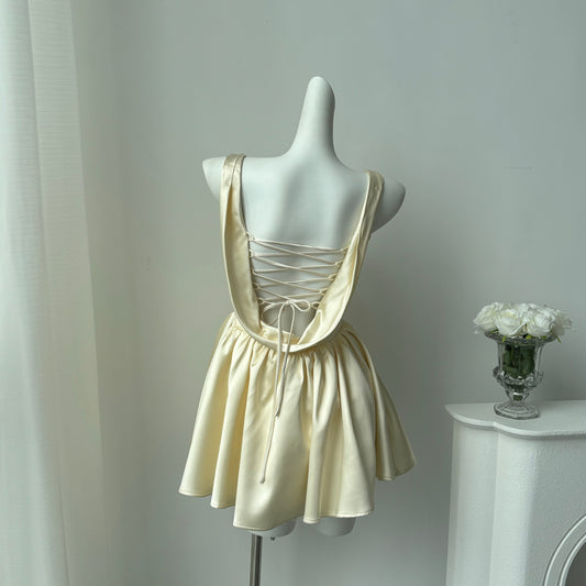 Pretty A line Square Neck Champagne Satin Formal Homecoming Dresses Short 16th Birthday Outfits Graduation Dress Mini Cocktail Dresses DH2466