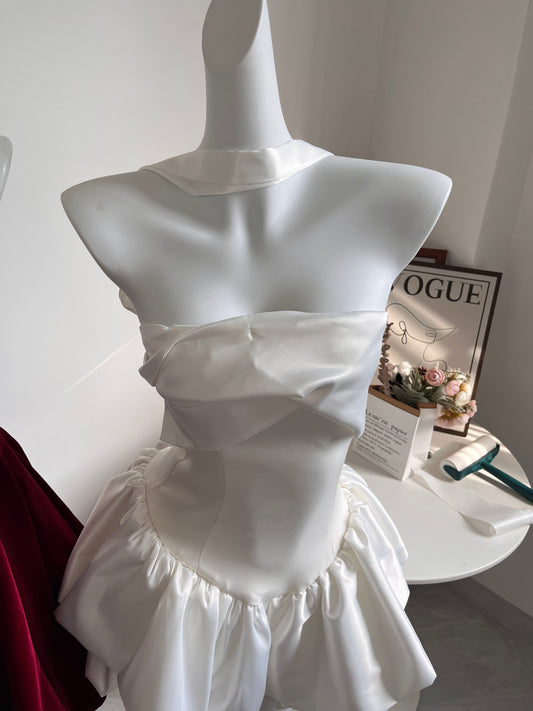 Pretty A Line Strapless White Satin Formal Homecoming Dresses 21st Birthday Outfits Graduation Dress Short Mini Night Cocktail Dresses DH2480