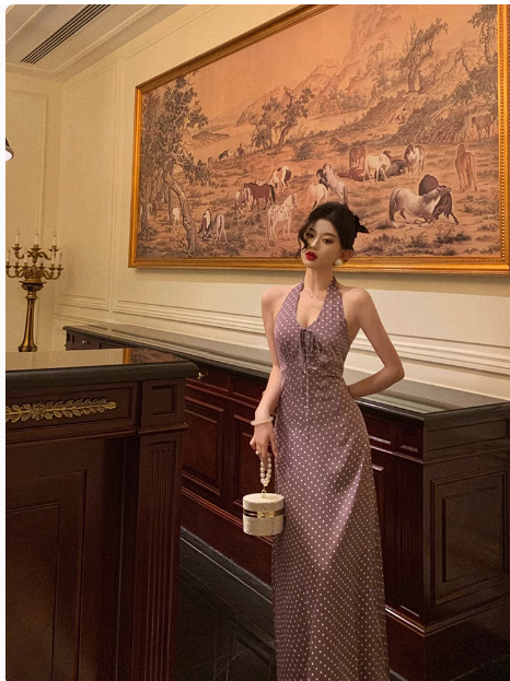 Pretty A line Halter Grape Polka Dots 21st Birthday Dress Party Outfits Birthday Outfits For Women DP0191