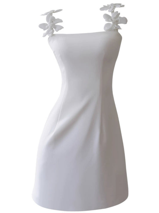 Modest Sheath Spaghetti Straps White Formal 8th Grade Homecoming Dress Middle School Short 18th Birthday Outfits Graduation Dress Hoco Dresses DH2129