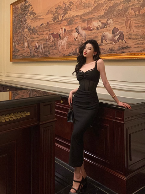 Modest Sheath Spaghetti Straps Black Satin 21st Birthday Dress Party Gown Birthday Outfits Birthday Dress Ideas For Women DP1628