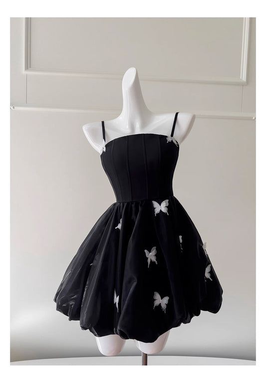 Modest Ball Gown Spaghetti Straps Black Organza Formal 8th Grade Homecoming Dress Middle School Short 18th Birthday Outfits Graduation Dress Hoco Dresses DH2127