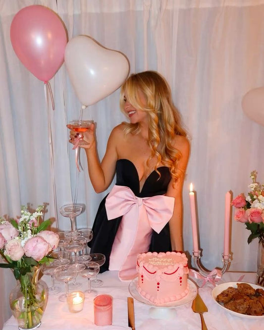 Modest A Line Sweetheart Black Mini Short Formal 8th Grade Homecoming Dresses Summer Middle School Hoco Dress 18th Birthday Outfits With Pink Bow DH1207