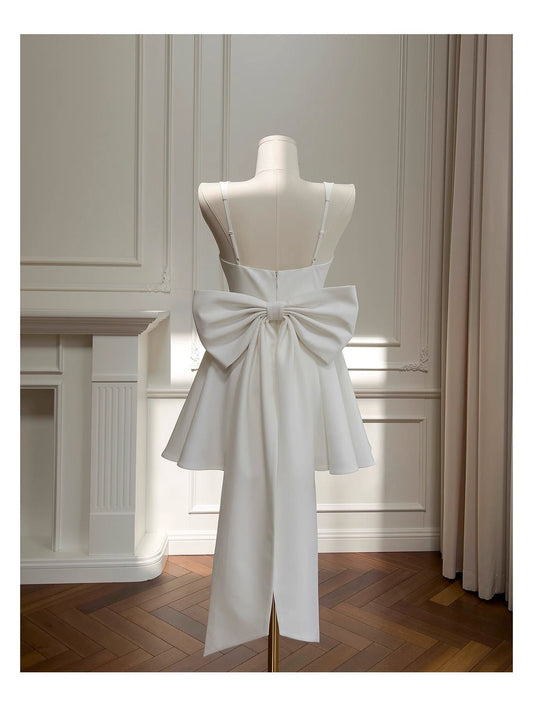 Modest A Line Spaghetti Straps White Satin Short Formal Homecoming Dress Middle School Short 20th Birthday Outfits Graduation Dress Cocktail Dresses DH2197
