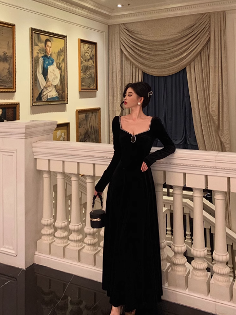 Modest A line Long Sleeves Black Velvet 21st Birthday Dress Party Gown Birthday Outfits Birthday Dress Ideas For Women DP1468