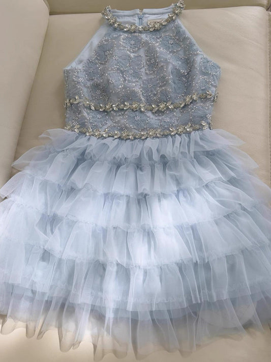 Modest A Line Jewel Neck Light Sky Blue Tulle Formal 8th Grade Homecoming Dress Middle School Short 18th Birthday Outfits Graduation Dress Hoco Dresses DH2130