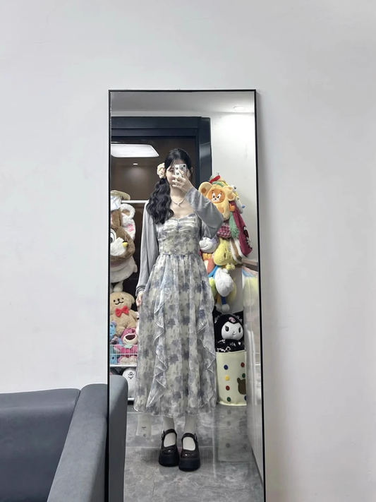 French Retro A Line Spaghetti Straps Floral Ruffles Party Beach Dresses Birthday Outfits SD551