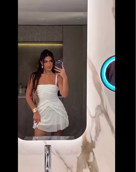 Fashion White Spaghetti Strap A-Line Short Birthday Dress Outdoor Party Dress ED03441