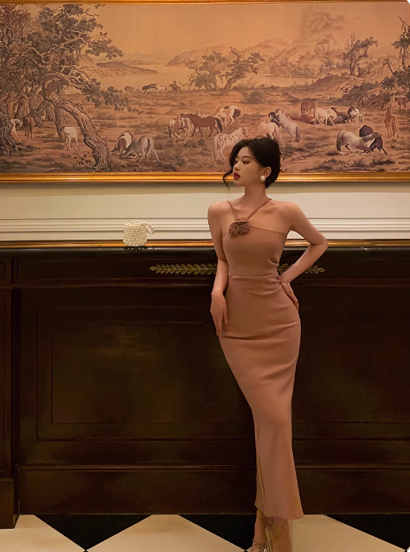 Elegant Sheath Dusty Pink Sleeveless 23rd Birthday Dress Party Gown Birthday Outfits Birthday Dress Ideas For Women DP1433