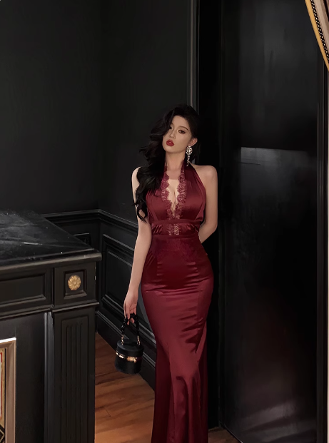Elegant Mermaid Halter Burgundy 21st Birthday Dress Party Gown Birthday Outfits Birthday Dress Ideas For Women DP1443