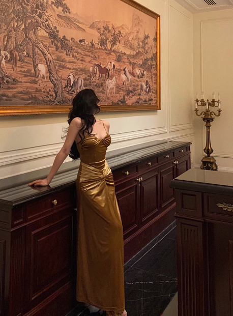 Elegant Mermaid Gold Satin 21st Birthday Dress Party Gown Birthday Outfits Birthday Dress Ideas For Women DP1450
